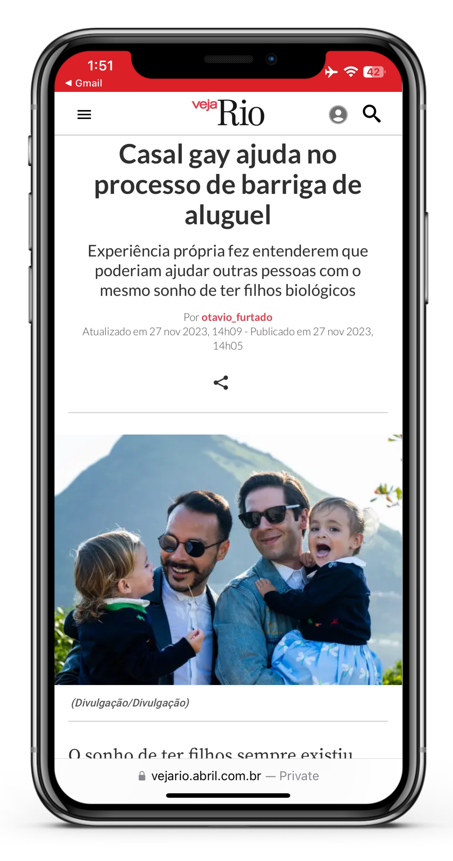 Published on 11/27/2023 by Veja Rio.The dream of having children always existed for the couple Gustavo Sotero & Romain Menei. Although adoption was the way imagined by Romain, because of the lack of knowledge on surrogacy, his husband dreamed of biological children.